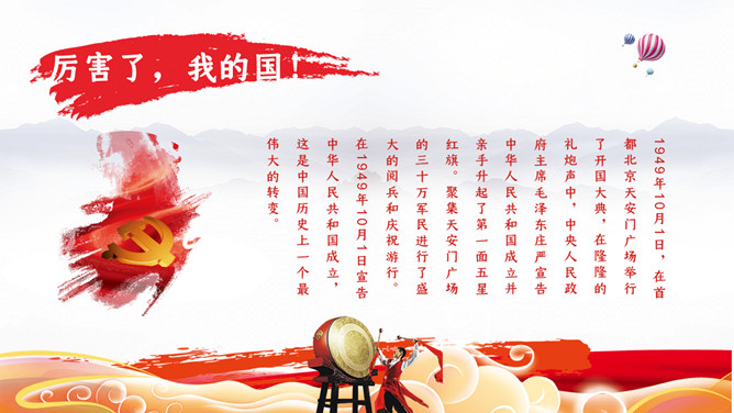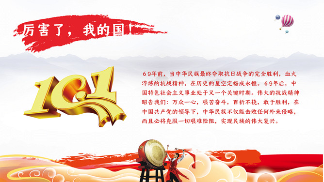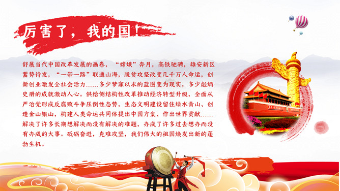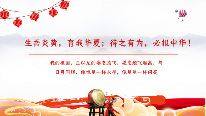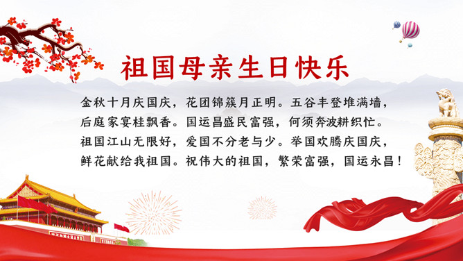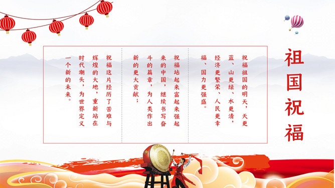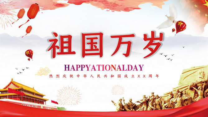 爱我中华喜迎国庆节PPT模板。祝福祖国的明天,天更蓝、山更绿、水更清,经济更繁荣、人民更幸福、国力更强盛。