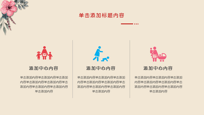 康乃馨感恩母亲节PPT模板。一套母亲节主题模板,康乃馨花朵素材装饰,暖色调背景。