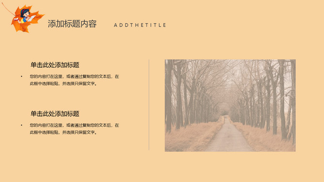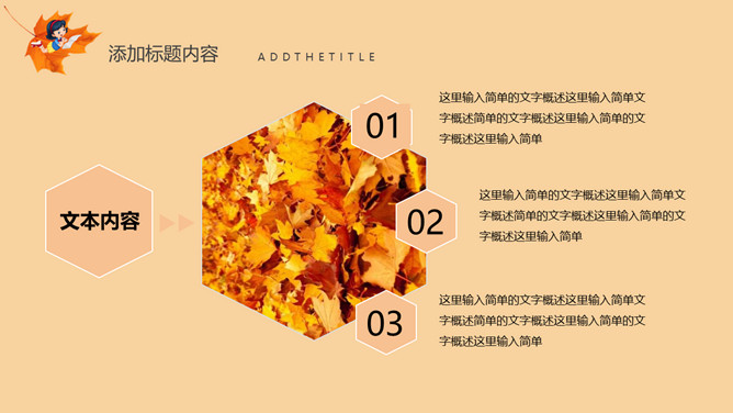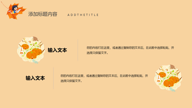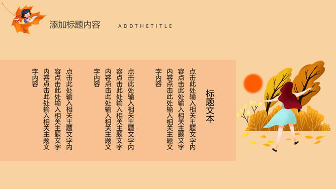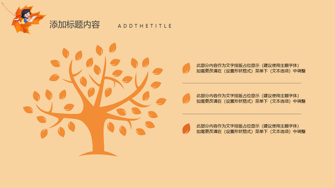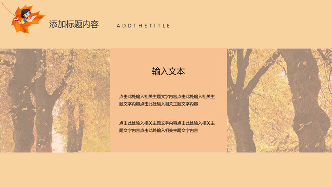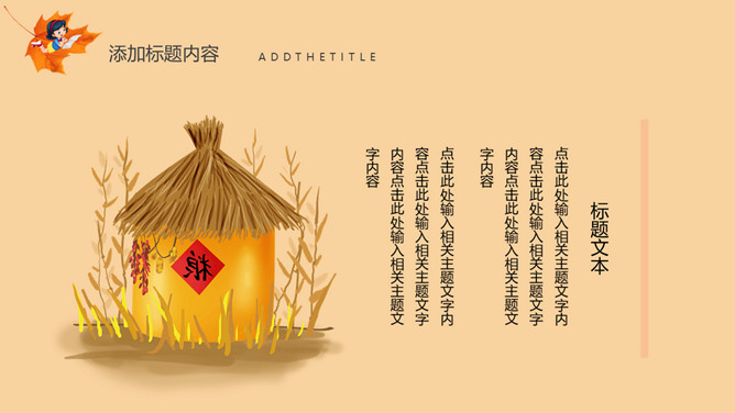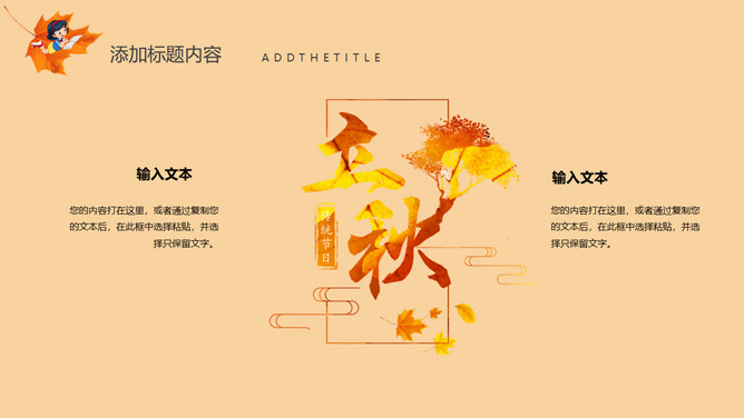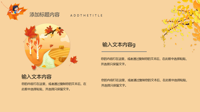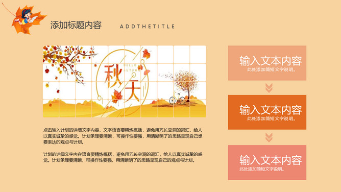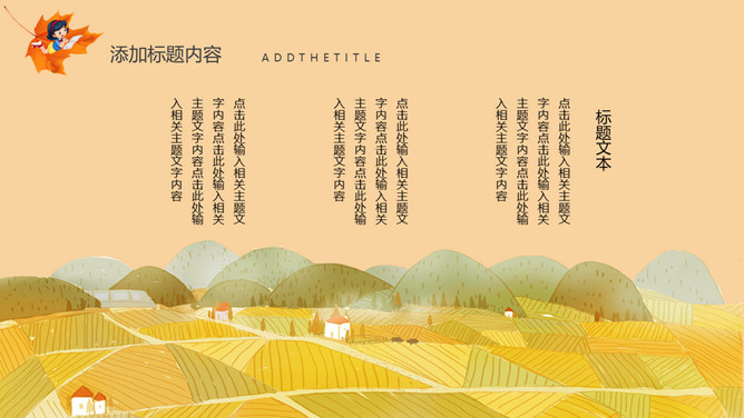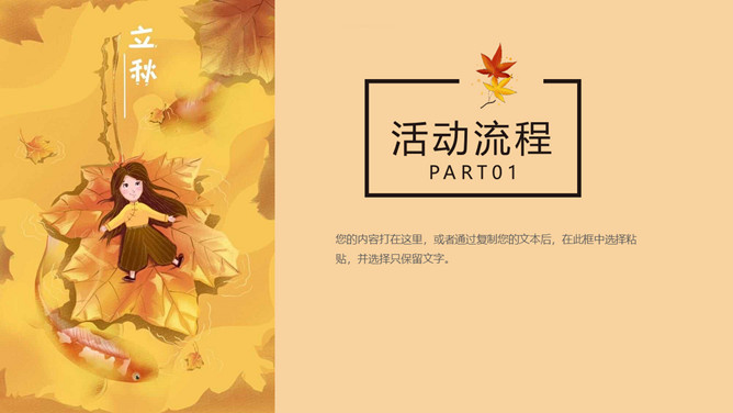 秋天风景立秋节气PPT模板。一套立秋节气主题模板,卡通设计风格,橙色主色调,秋天风景背景。
