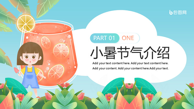 小女孩果汁小暑节气PPT模板