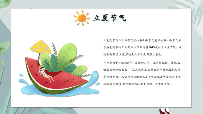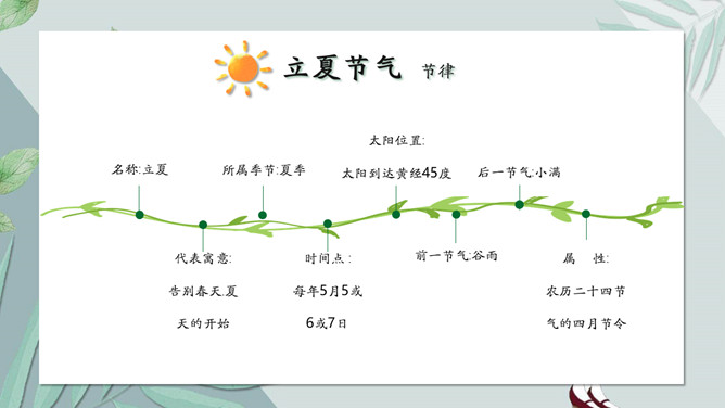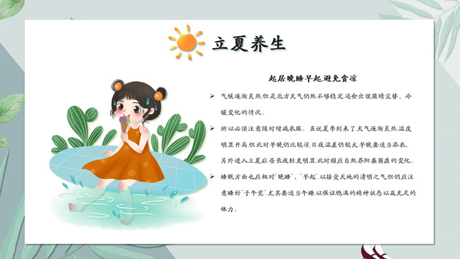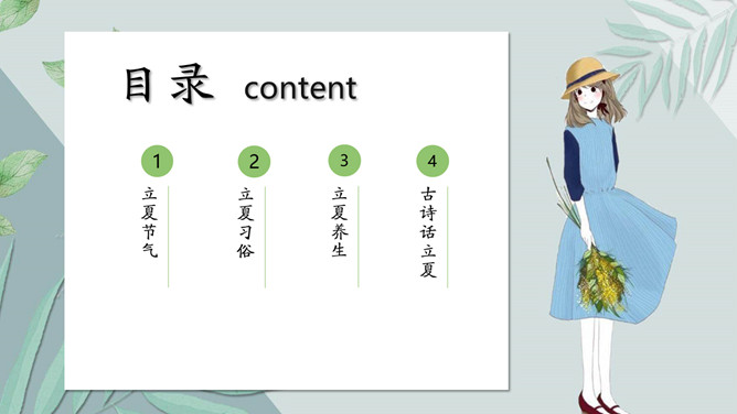 女孩叶子立夏节气PPT模板