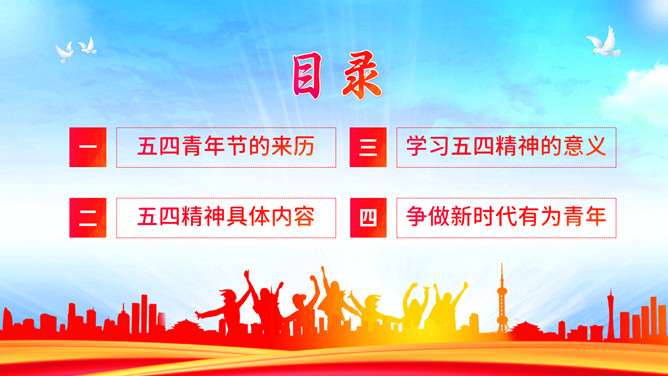 青年节弘扬五四精神团课PPT模板