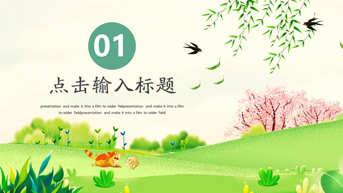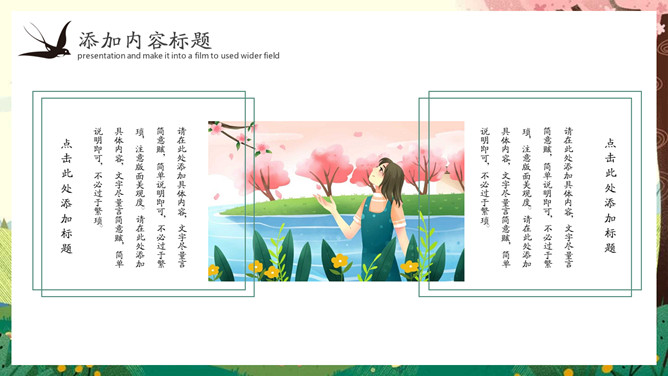 春天女孩春分节气PPT模板。一套春分节气主题模板,卡通女孩春天户外郊游背景。
