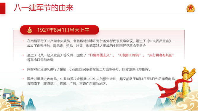 解放军简史建军节PPT模板