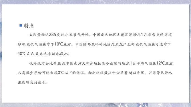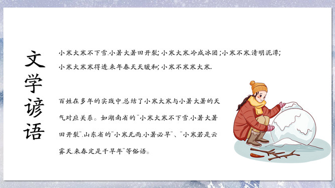 冰天雪地小寒节气PPT模板。小寒大寒不下雪,小暑大暑田开裂;小寒大寒,冷成冰团 ;小寒不寒,清明泥潭;小寒大寒寒得透,来年春天天暖和;小寒不寒寒大寒。