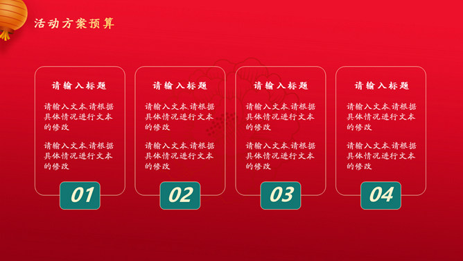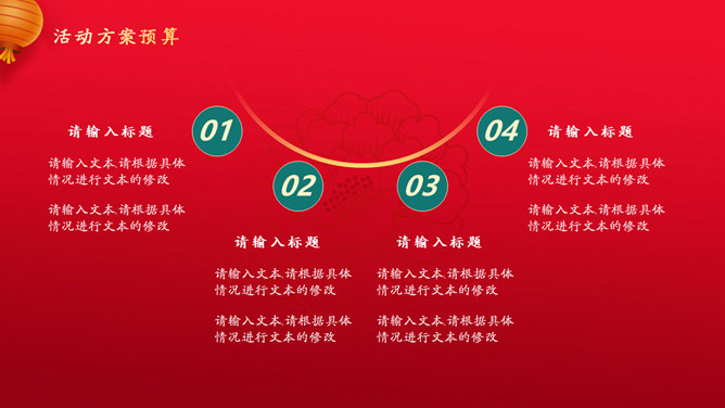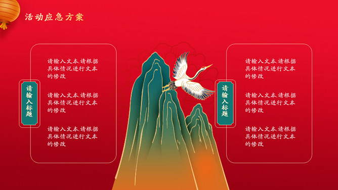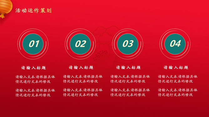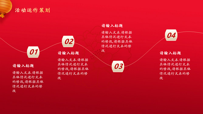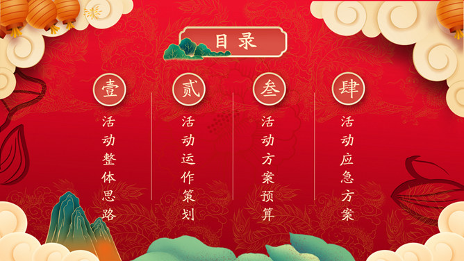 喜迎元旦活动策划PPT模板。一套元旦主题模板,国潮风风格设计,喜庆红色主色调,适合元旦活动策划等用途。