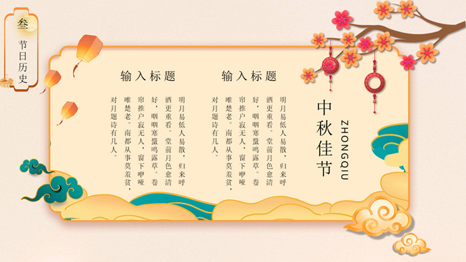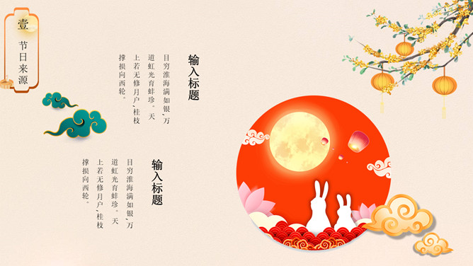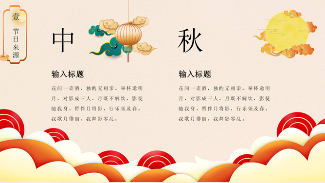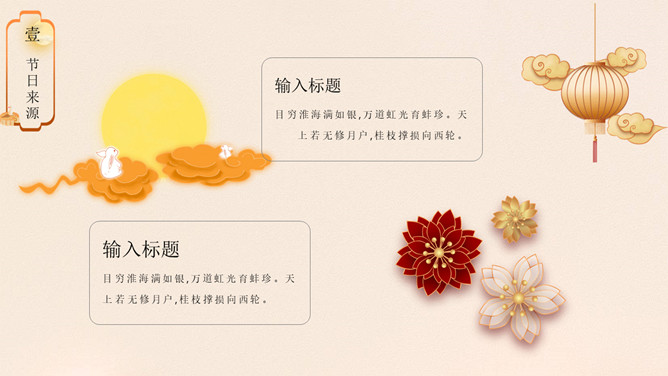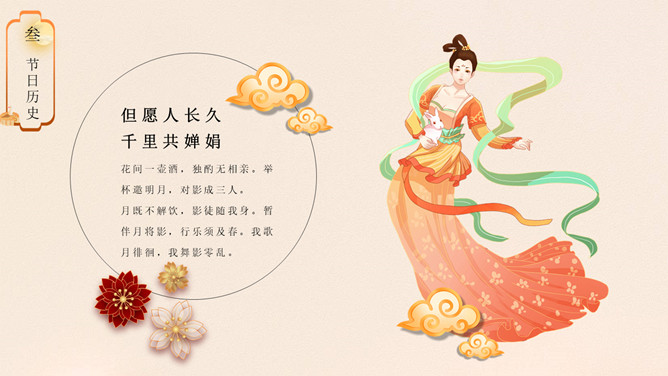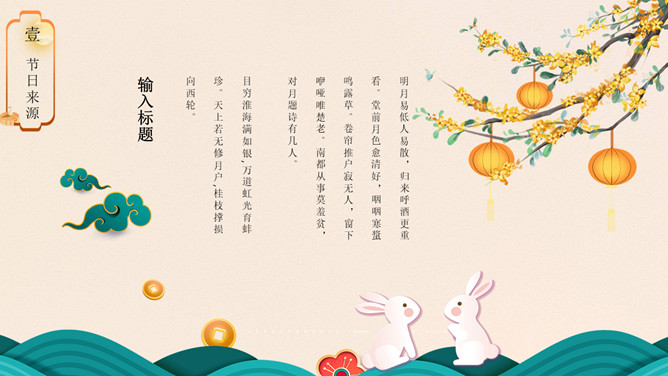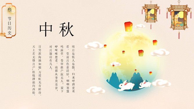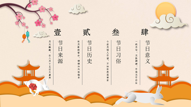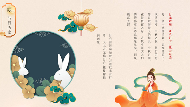可爱国潮风中秋节PPT模板。月光融融,在八月十五这天最美。月,洒一地的清辉,思乡的游子,或歌亦吟。中秋之夜,他们的思想是歌海漫天的精灵。中秋月圆,花好情郁之际,古代中国文人们的情怀更是诗意飘逸尽染,词风横荡天涯。