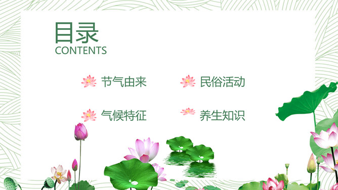 荷花大暑节气主题PPT模板