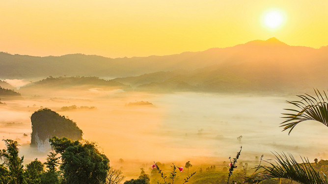 壮美山川风景PPT背景图片。高清大图,共5张。关键词:高山 日落 壮观 山峰 河流 云海 云雾。