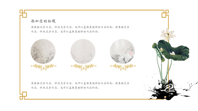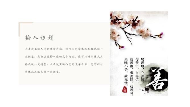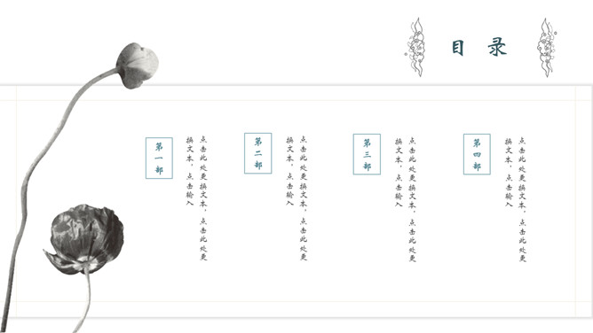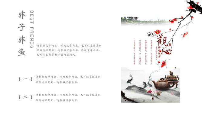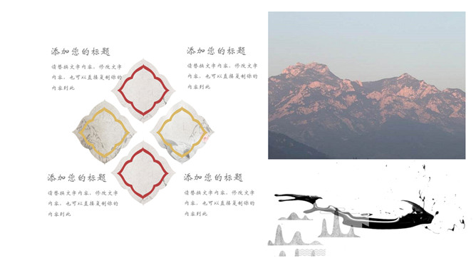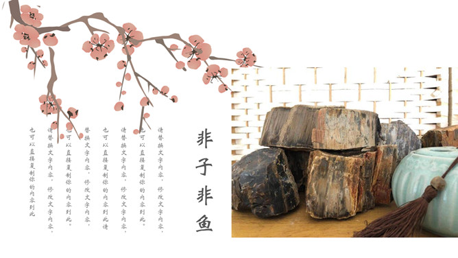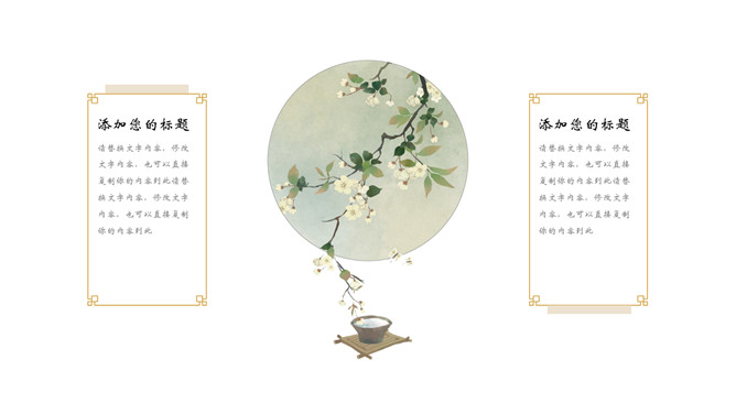飞鸟新中式古风PPT模板。一套中国风幻灯片模板,创意新中式设计,简约唯美,版面简洁。