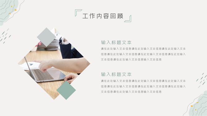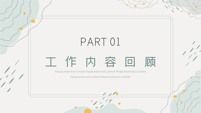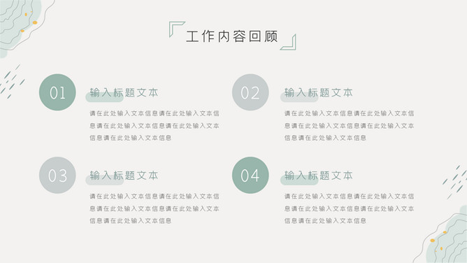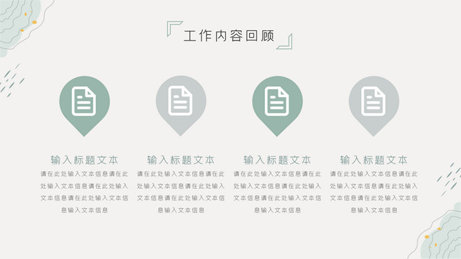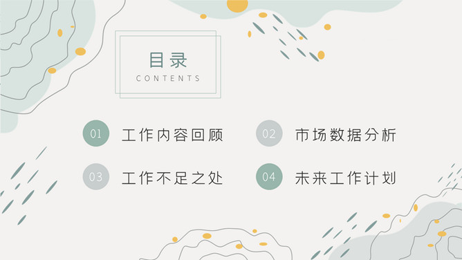 简约淡雅工作汇报总结PPT模板。一套工作总结报告幻灯片模板,淡绿色主色调,曲线纹理背景,简洁设计。