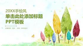 彩色水彩卡通小树PPT模板