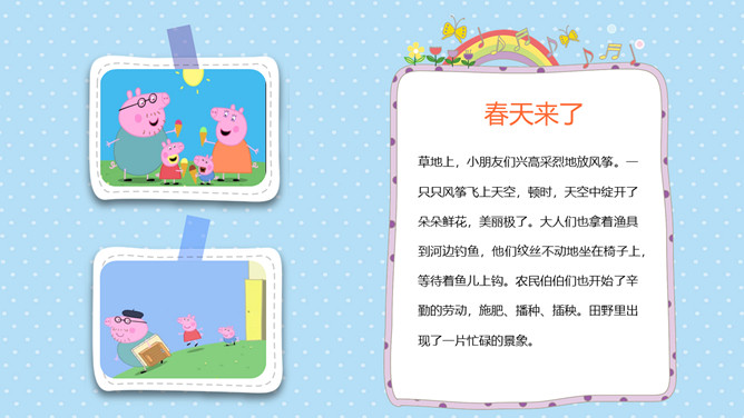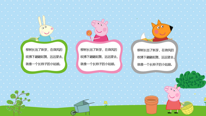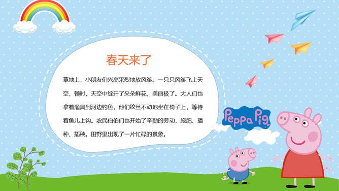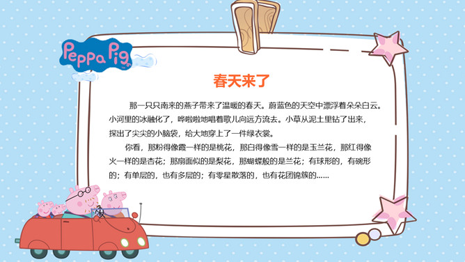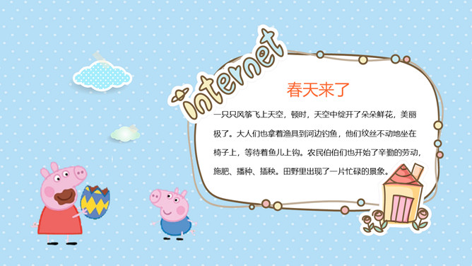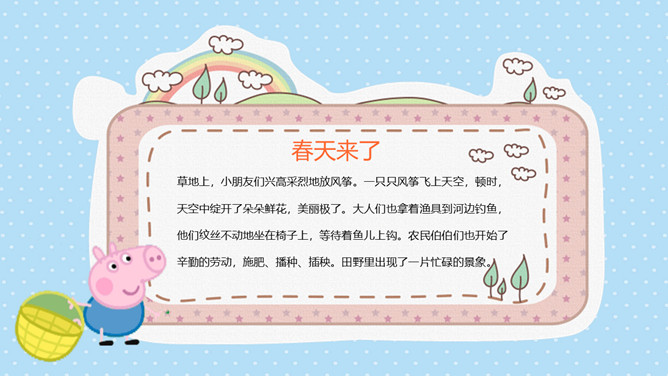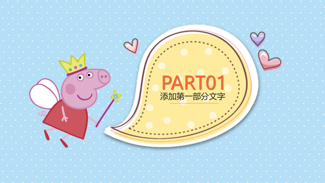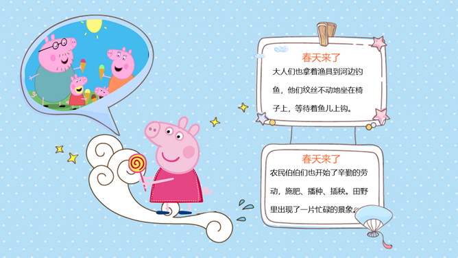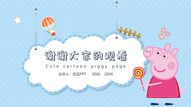 可爱卡通小猪佩奇PPT模板。一套动画片小猪佩奇主题模板,可爱卡通设计风格,适合幼儿园或低年级课件使用。