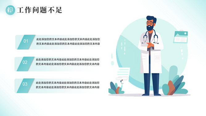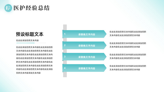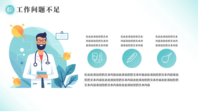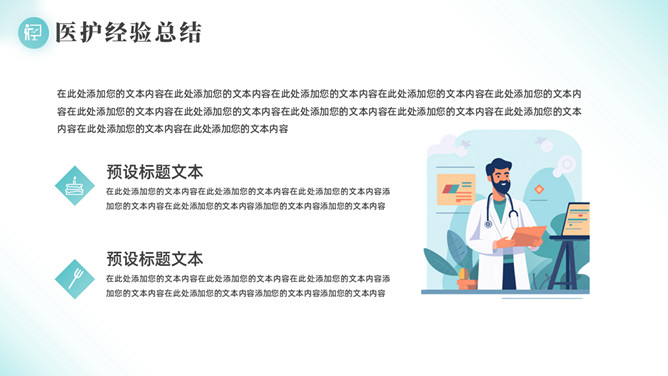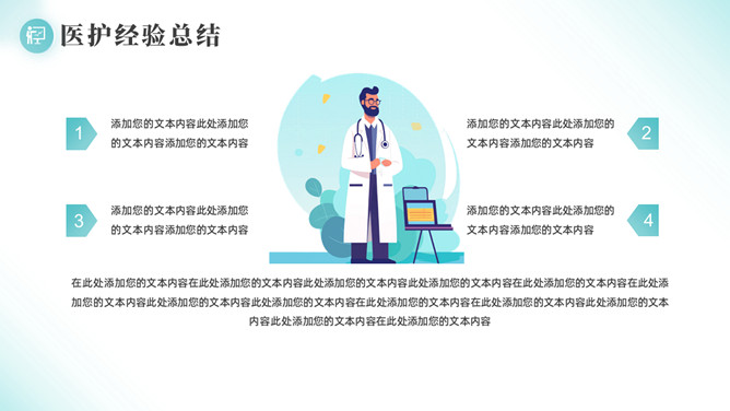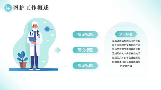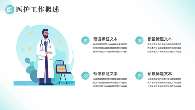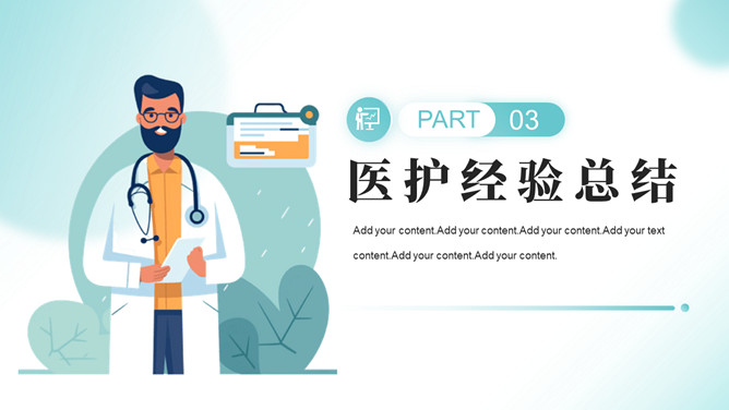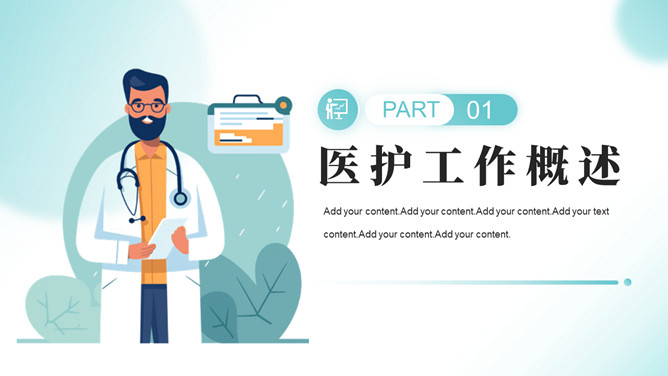 医生护士进修报告PPT模板。一套医疗主题幻灯片模板,矢量元素设计,适合医疗人员工作总结、进行报告等用途。
