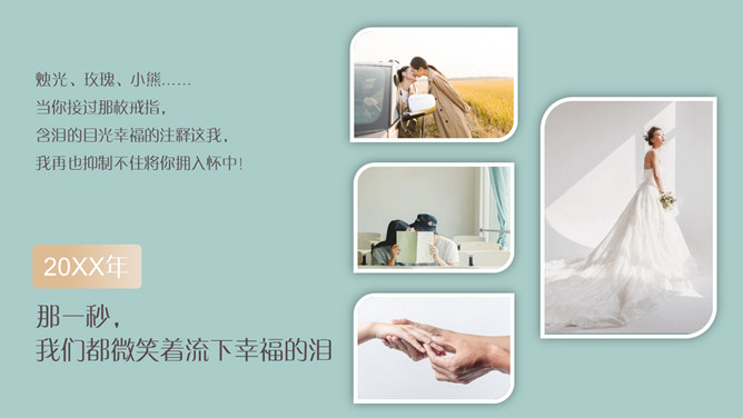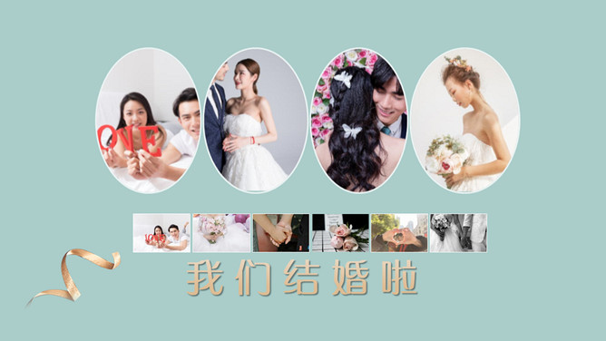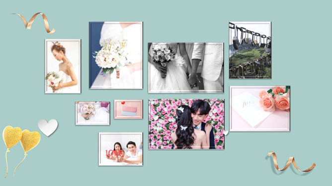 婚礼结婚照片相册PPT模板。一套婚礼相册幻灯片模板,照片排版类型丰富实用,动态播放效果。