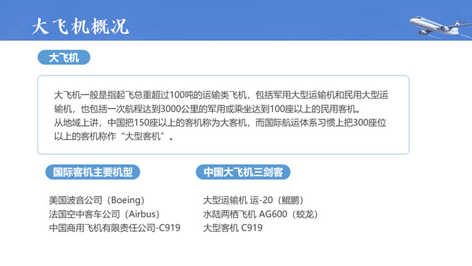 飞机航空航天知识培训PPT模板