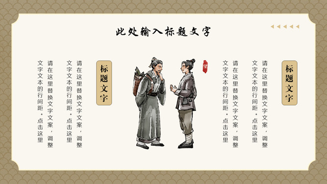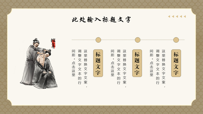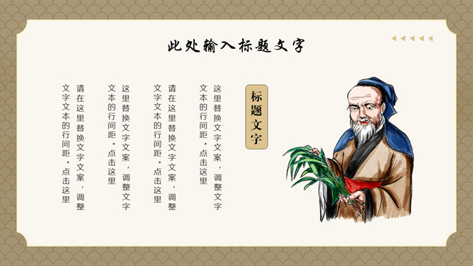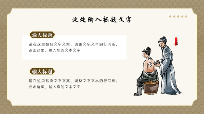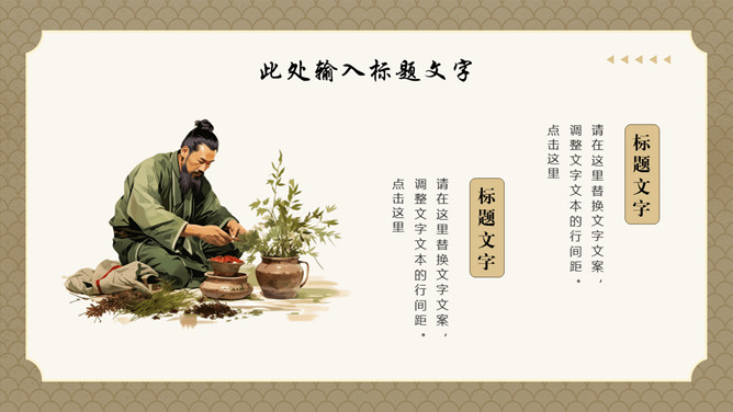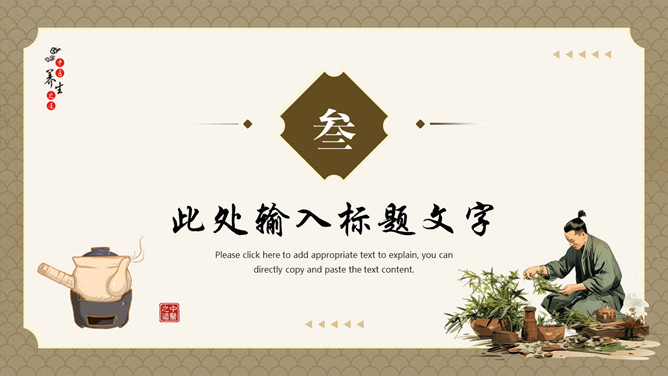 古典中医中药主题PPT模板。一套中医中药主题幻灯片模板,古人煮药煎药背景,古典云纹背景。