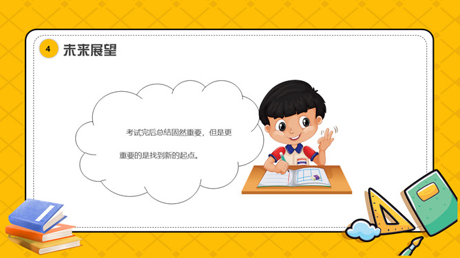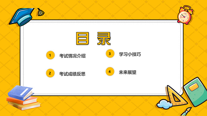 其中考试质量分析班会PPT模板。内容包括考试情况介绍、考试成绩反思、学习小技巧、未来展望。
