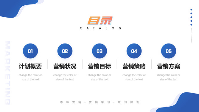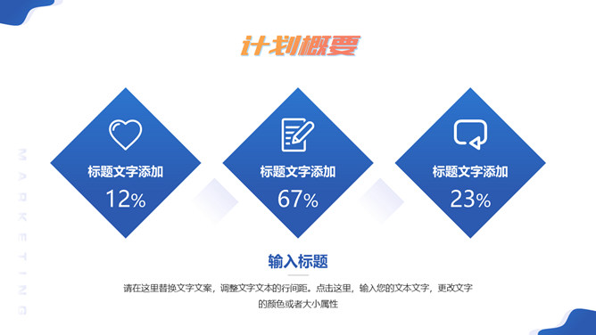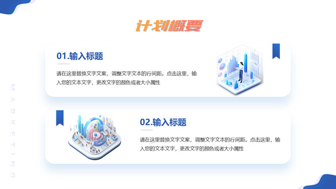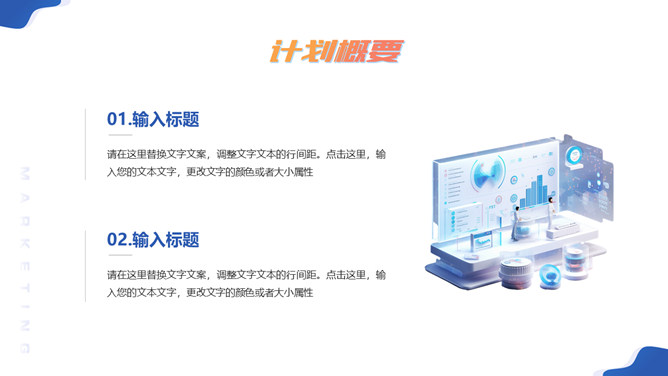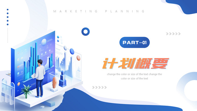 市场营销策划计划方案PPT模板。内容包括计划概要、营销状况、营销目标、营销策略、营销方案。