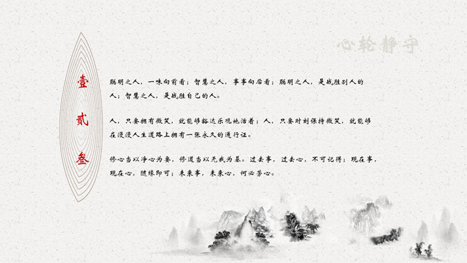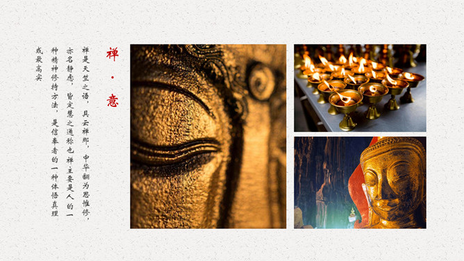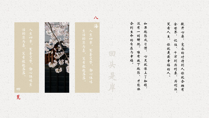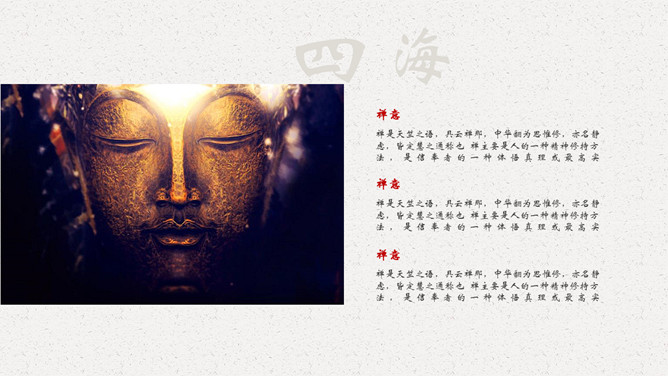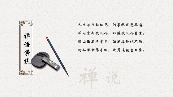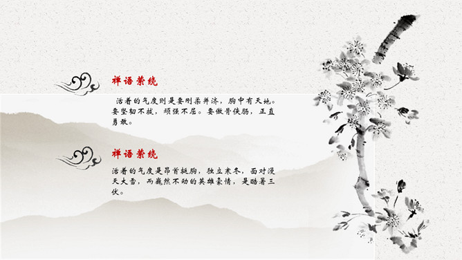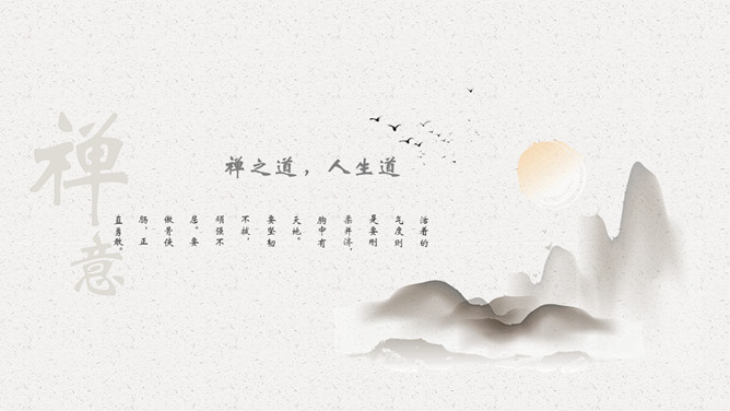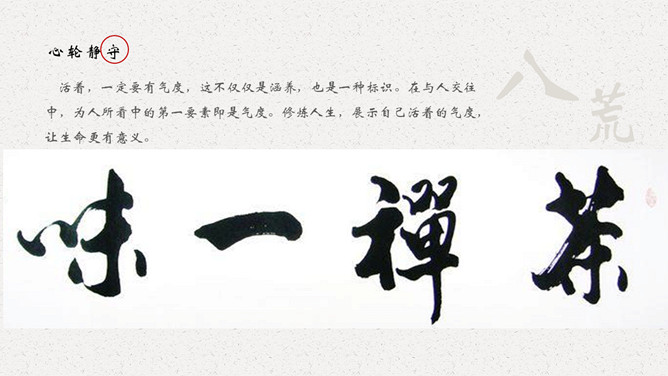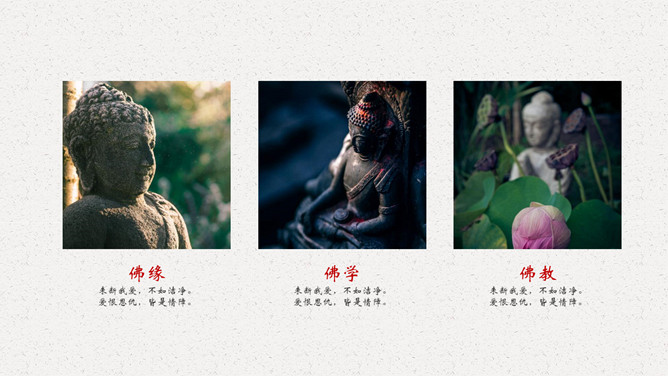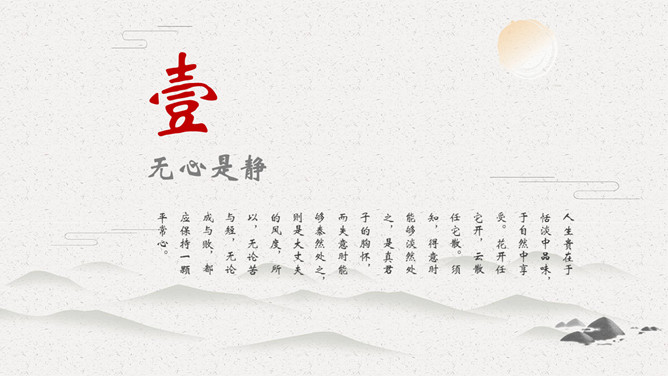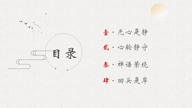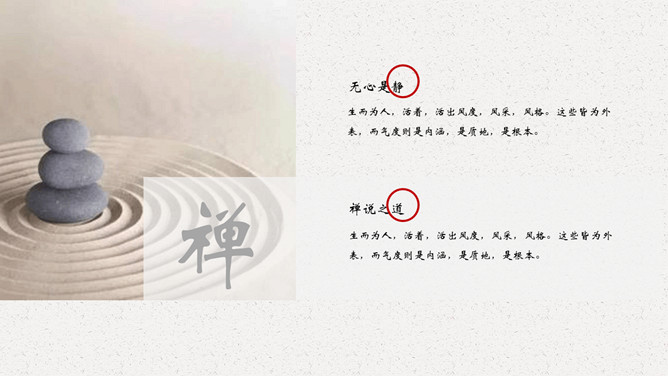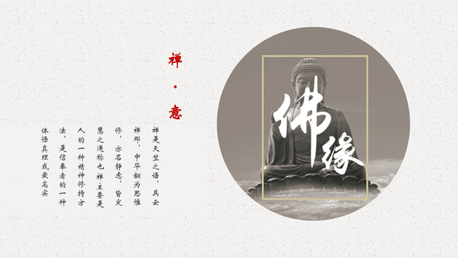 佛教佛学禅意中国风PPT模板。人生贵在于恬淡中品味,于自然中享受。花开任它开,云散任它散。