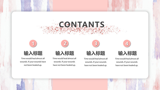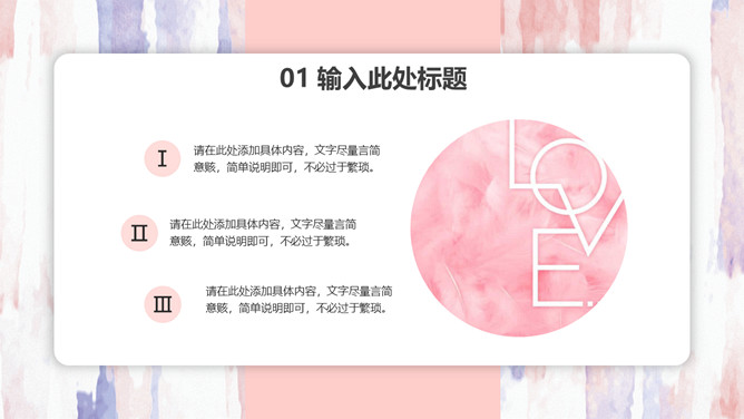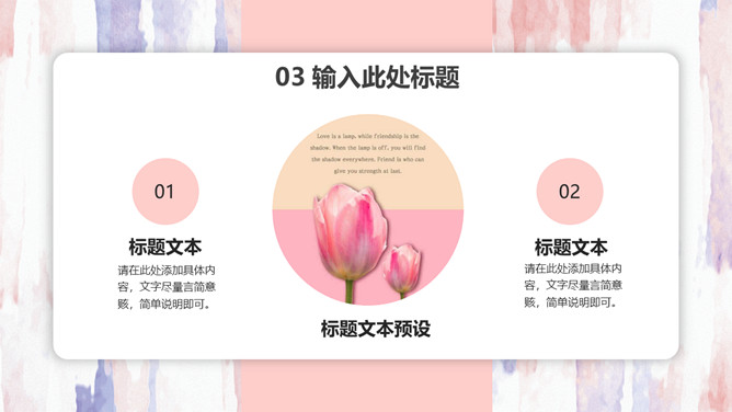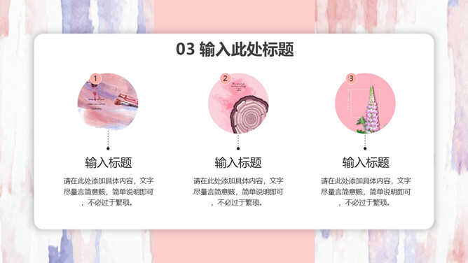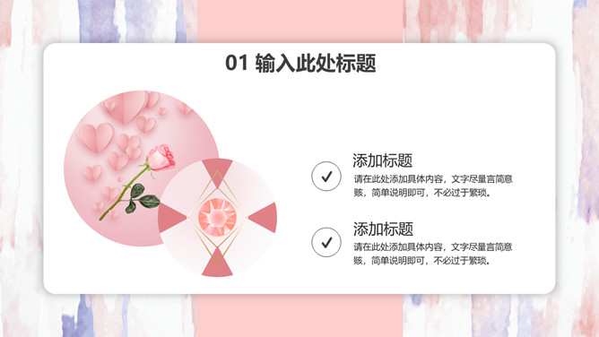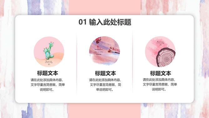粉色卡片式小清新PPT模板。一套多功能通用幻灯片模板,艺术设计纹理背景,粉色主色调,卡片悬浮式效果。