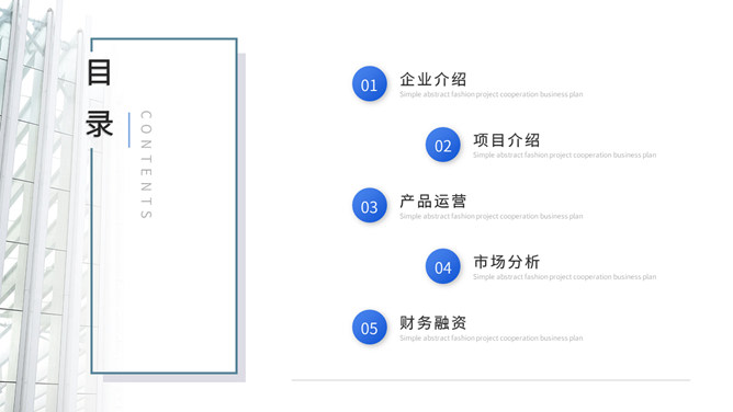 极简蓝色商务计划书PPT模板。一套商业创业计划策划书模板,极简风格设计,蓝色主色调,通用性强。