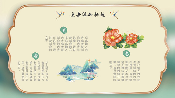 质感国潮方框中国风PPT模板。一套精美中国风幻灯片模板,很有质感,莫兰迪青黛配色,动态播放下过。