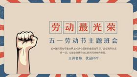复古五一劳动节主题班会PPT模板