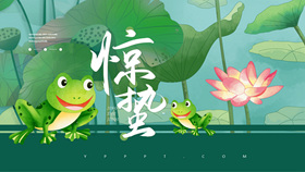 荷花青蛙惊蛰节气PPT模板