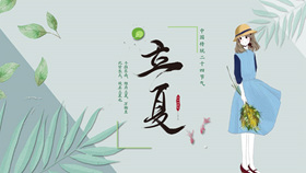 女孩叶子立夏节气PPT模板