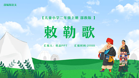 北方美丽的大草原,仿佛让我们看到蓝蓝的天,青青的草,洁白的云,成群的牛羊。在古代同样有一首古诗词,它写尽了北方草原的富饶壮丽,写尽了草原人对家乡的热爱,今天就让我们一起走进《敕勒歌》。1.学会本课的生