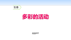 祖国在我心中朗诵会、学校运动会、六一儿童节演出,植树、端午节看赛龙舟、看望孤寡老人这些校内外活动,你参加过哪些?选一次活动写下来,和同学分享你的经历。主题是多彩的活动,泛指校内外举办的各种集体活动,而