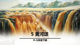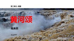 深情地读: 读出节奏与重音,把握好语速和语调。 有感情的朗诵,读出气势,读出诗人要表达的感情。全诗分成朗诵词和歌词两大部分,朗诵词可以看作是一个序曲,它的主要内容和作用是什么? 如何理解黄河是摇篮是屏