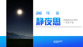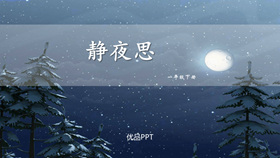 这是古诗的第1、2 句,描写了洒落在床前的清幽月光,用霜来形容月光,营造了一个夜深人静的清幽世界。夜里醒来的時候,我看见床头一片雪白明亮的月光,我以为是地上结满了白霜。同学们,这节课我们走进了大诗人李