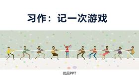 游戏可以锻炼我们各方面的能力,可以让我们进入自由自在的快乐天地。今天就让我们来做一做,写一写有趣的游戏。1.观察右边的插图,说说图中的小朋友在干什么,感受游戏的过程,并了解本次习作的话题是记一次游戏。