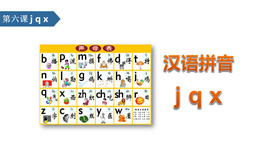 今天我们继续来学习三个新声母jqx。仔细观察左图:爸爸和叔叔在干什么?弟弟又在干什么?鸡啄蝴蝶 j j j,竖弯加点 j j j。切个西瓜xxx ,像个叉叉xxx。彩色气球qqq,左上半圆qqq 。课