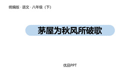 结合诗人的时代背景,理解诗歌的内容。品味文章语言,感受诗中所描述的社会现实,体会诗人的情感。(重难点)茅屋,指杜甫在成都浣花溪畔所建的草堂。为所是一个表示被动的固定句式。 歌,古代诗歌的一种体裁。题目