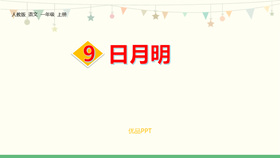 《识字9 日月明》部编版语文课件 一年级上册。请你选择喜欢的词语说一句话。明月 力气 尘土 众人 从前 森林 中心 一条。读一读:歪歪扭扭 晃眼睛 品茶 亮晶晶。所属专题:日月明ppt。