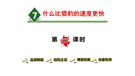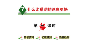 这就是猎豹。都说猎豹猎取动物以速度取胜,但是你知道吗?这世界上还有比猎豹更快的事物呢。今天就让我们走进课文,看一看谁是真正的速度之星吧!同学们,我们在读课文的时候会发现,有的同学读完了,而我们才刚读到