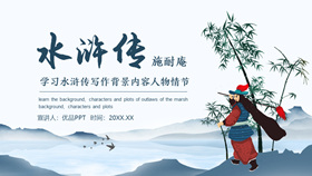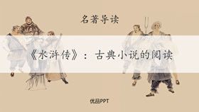 一套介绍古典名著《水浒传》的幻灯片课件模板,包括走近作者、相关介绍、人物形象、读书指导、专题探究、阅读推荐等内容。所属专题:水浒传ppt。