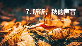 听听秋的声音PPT课件1。秋姑娘悄悄地来到我们身边,她不仅带来了缤纷的色彩,还带来了奇妙的声音,秋的声音是自然界的万物共同演奏的一首秋天的华美乐章。让我们走进课文,去聆听这美妙的声音,去感受秋天的独特