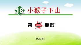 听老师朗读课文,找一找:小猴子下山到了哪些地方?小猴子在这些地方做了什么?小猴子一路往前走,他遇到了很多喜欢的东西,可是等到他回家的时候,却只能空着手,我们能不能像它一样呢?小猴子下山找食物,他一路遇