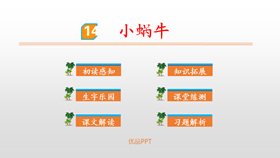 课文写了一只小蜗牛爬到树林玩儿,因为爬得太慢了,来来回回就经历了春夏秋冬四个季节。1、正确、流利地朗读课文。2、默写生字词。对照图画,读一读课文。朗读指导:这是一篇轻松幽默的小故事。故事中弥漫着一股平