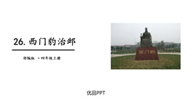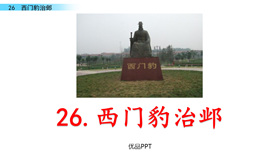 同学们,你知道西门豹这一历史人物吗?西门豹,复姓西门,叫豹,是战国时期魏国人。他是历史上著名的政治家、军事家,曾立下赫赫战功。 今天我们一起走进课文《西门豹治邺》,去了解一下西门豹的故事吧!要求:1、