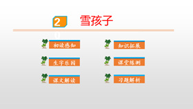 这篇课文讲述了一个给小白兔带来了快乐的可爱的雪孩子,最后为了从大火中救出小白兔而舍弃了自己生命的童话故事。雪孩子的善良、勇敢,告诉我们,当别人有困难时,要勇于伸出援助之手。这篇课文写的是雪孩子给小白兔
