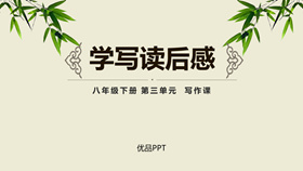 1.初步掌握写读后感的写法,开发引议联一一结的写作思路,提高写作能力。2.结合单元课文的阅读,借鉴写作,注意把握读和感的关系,善读会感3.通过学写读后感,使学生养成边读边思的良好阅读习惯,激发学生写读