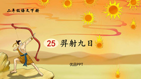 学习目标:1.能够根据表格提示的内容讲故事。 2.能就自己觉得神奇的内容和同学交流。神箭手羿为了帮人们脱离苦海,又是如何射九日的呢?让我们走进《羿射九日》吧!十个太阳同时出现后,给大地带来了什么危害?