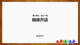 小蜘蛛,牵根线,晃来晃去荡秋千,横一根、竖一根,织出大大网一片。网住苍蝇当储粮,网住飞蛾千千万!蜘蛛织网的本领可真大,可是有一只蜘蛛觉得每天等着小飞虫落在上面好无聊,于是决定开一家店。让我们走进课文看