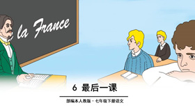 时代背景:1870年,普法战争爆发。1871年,法国战败,签订和约,把阿尔萨斯和洛林两个州割让给了普鲁士。普鲁士为了让当地人民永远忘记祖国,好永远统治这个地方,下了一道命令:这两个州的学校只准教德语,